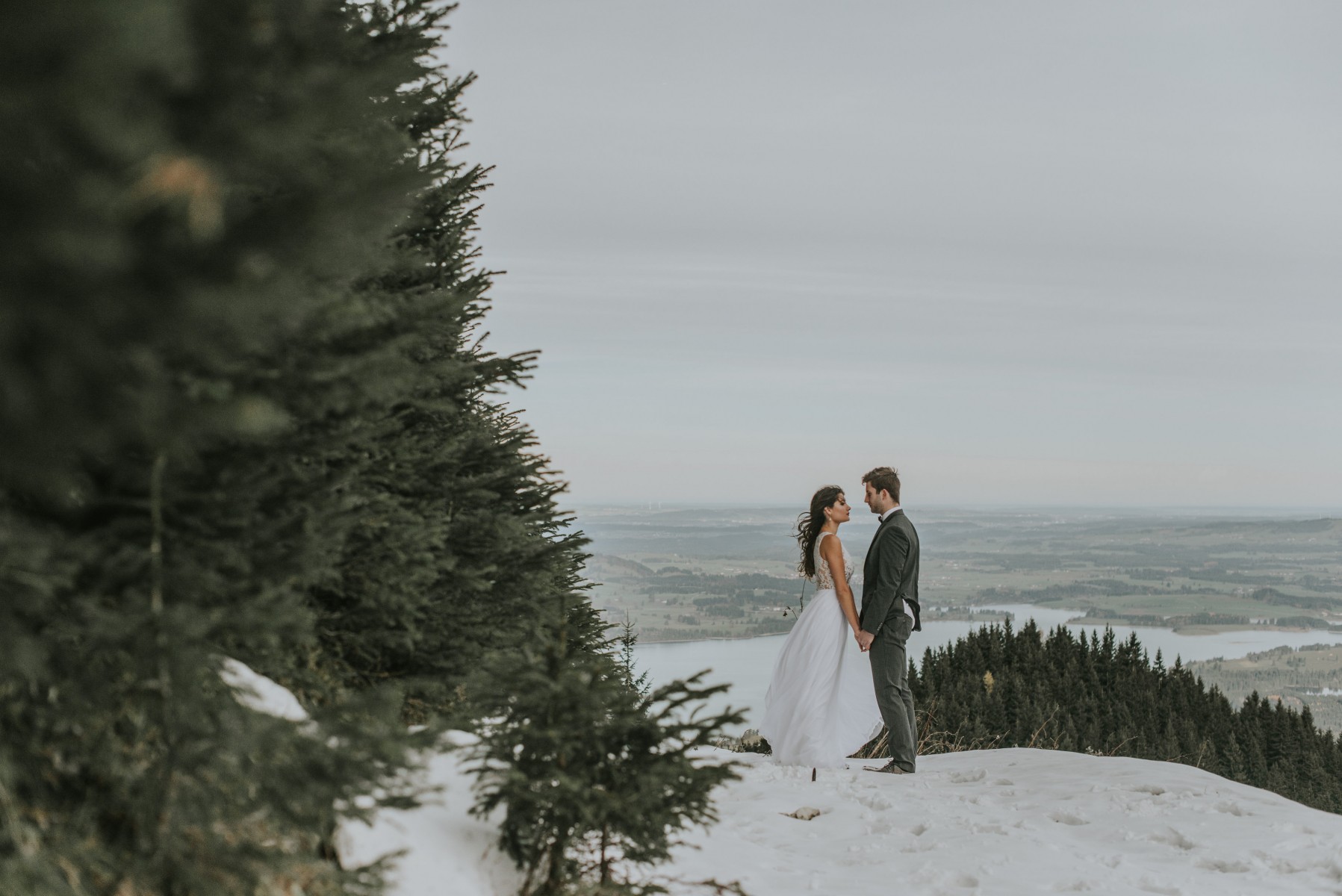 From the balcony of the 'WeitBlick' couples can really enjoy the snowy landscape. The bride and groom and their guests can see as far as the Swiss Alps. The spacious room is furnished with plenty of wood and radiates the rustic warmth that is perfect for a winter wedding in a small group.