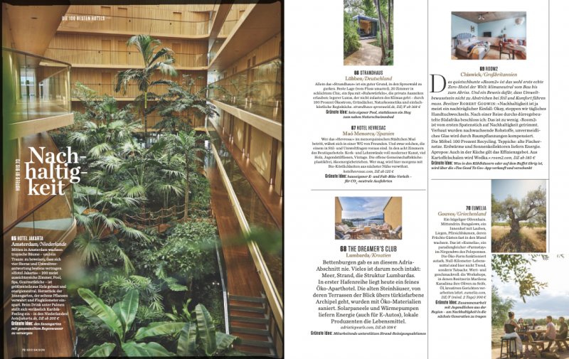 In the current GEO season, three of our partners are named among the best 100 hotels in Europe. We are even more pleased that all three appear in the category "Sustainability".