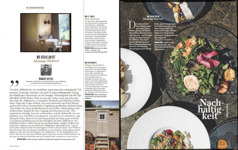 GEO Saison: Green Pearls® Partner in the Top 100 Hotels in Europe